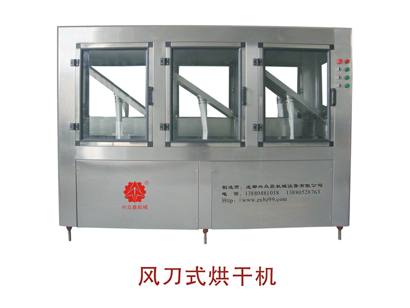 本機為風刀式烘干機,采用******的物理風力技術(shù)原理,******避免了傳統(tǒng)烘干機對瓶壁的二次污染。該機適應(yīng)瓶形廣泛,無毛刷帶來的污染。主要用于******玻璃瓶在貼標或噴碼裝箱前瓶身表面的干燥。利用強風把瓶壁上的水珠、水膜,從不同方向強制吹干。適合各類灌裝生產(chǎn)線上使用,如:白酒生產(chǎn)線、保健酒、酒生產(chǎn)線等。